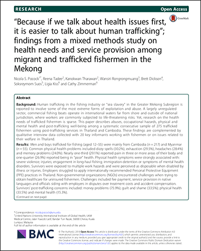 “Because if we talk about health issues first, it is easier to talk about human trafficking”; findings from a mixed methods study on health needs and service provision among migrant and trafficked fishermen in the Mekong