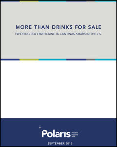 Based on data from the National Human Trafficking Resource Center (NHTRC) hotline and Polaris’s BeFree Textline, More than Drinks for Sale sheds light on the unseen realities faced by young women and girls from Latin America who are trapped in an underground sex economy operating out of cantinas and bars across the U.S. – and why their traffickers remain largely untouched. From December 2007 to March 2016, we identified 1,300 potential victims from Latin America in cantina-related cases in 20 U.S. states and Puerto Rico. Deceived and enticed with false promises of good jobs or a better life, victims are lured to the U.S. by some of the most violent trafficking networks operating in the country and are forced to engage in commercial sex. What’s more, the data reveal that law enforcement too often miss the signs of sex trafficking at cantina-type venues – and a critical opportunity to stop traffickers and help victims get out.