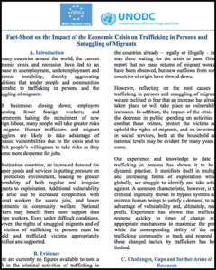 UNODC Fact-Sheet on the Impact of the Economic Crisis on Trafficking in Persons and Smuggling of Migrants (2009)